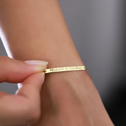 14K Solid Gold Personalized Name Bracelet | Engraved Bar Jewelry