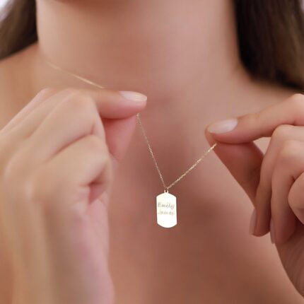 14K Gold Custom Engraved Name Tag Necklace – Personalized Keepsake