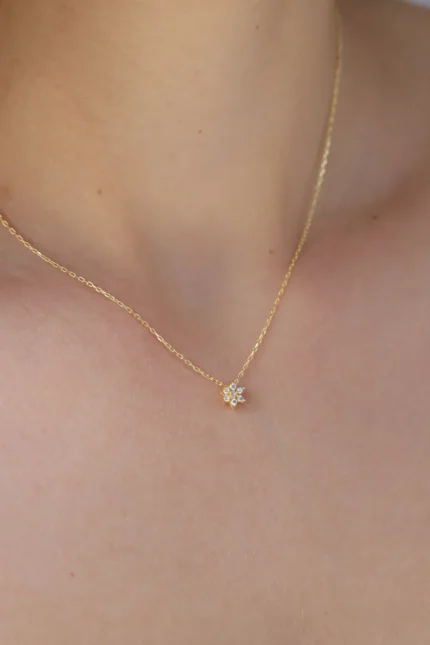 Diamond Flower Necklace – 14K Solid Gold Floral Pendant