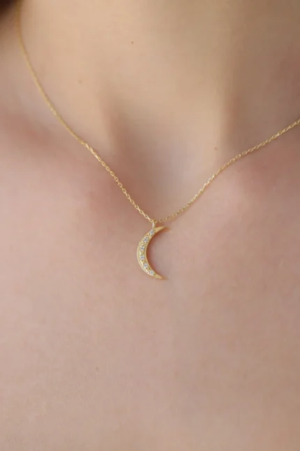 12,378.77₺ – 15,857.10₺Fiyat aralığı: 12,378.77₺ - 15,857.10₺Real Gold Diamond Moon Necklace – 10K/14K Crescent Pendant