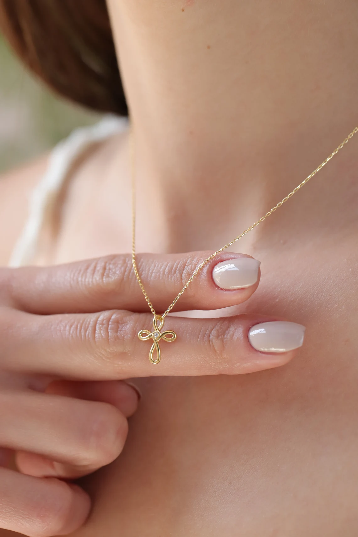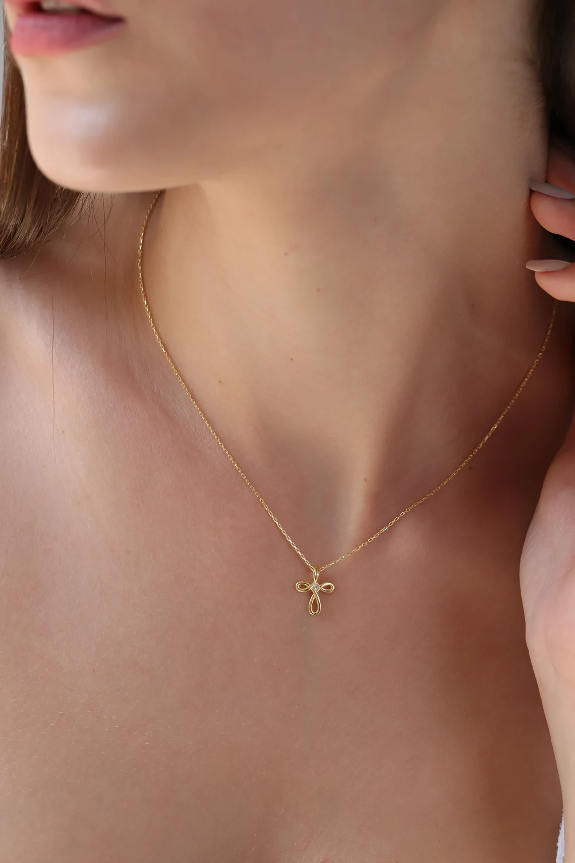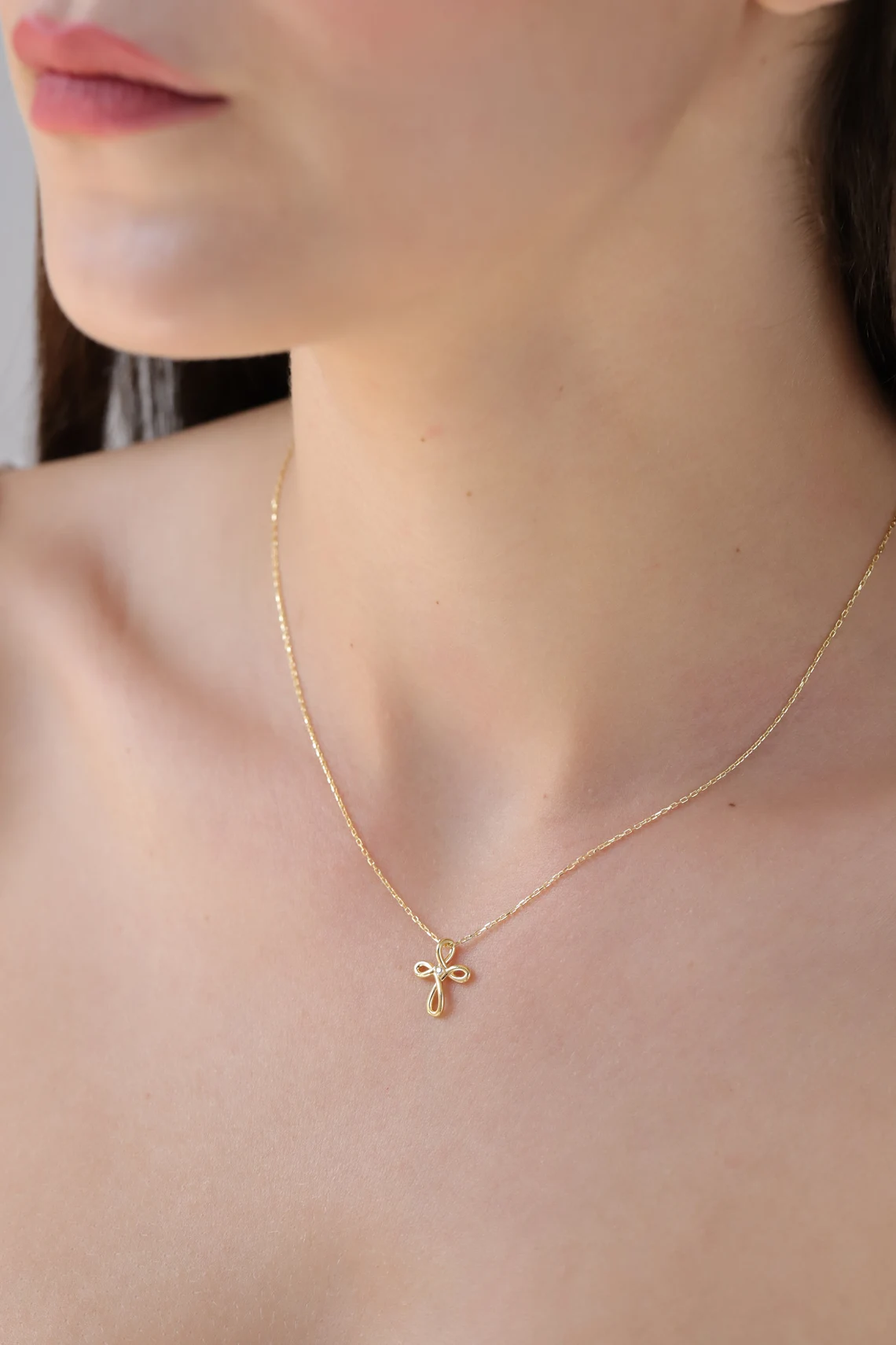 This dainty gold cross necklace combines faith and elegance, making it a beautiful piece for everyday wear or special occasions.