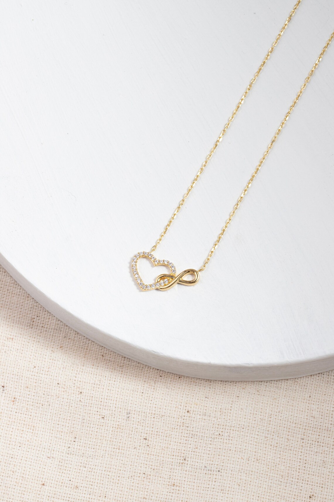 ✔️ Design: Elegant infinity loop connected to a diamond-studded heart