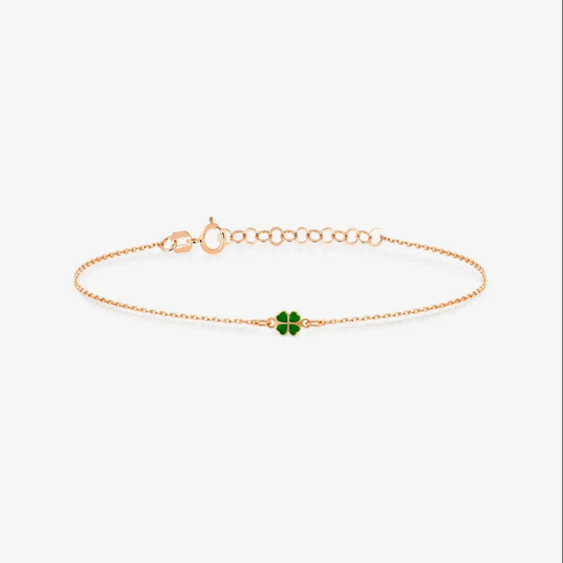 14k Gold Clover Bracelet, Green Enamel Lucky Charm
