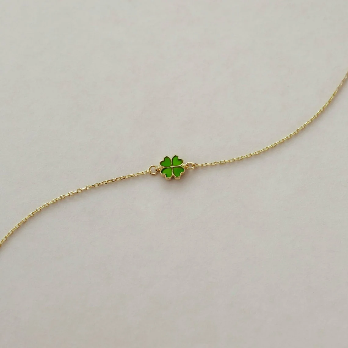 Bring elegance and good fortune into your everyday style with this 10k / 14k solid gold clover bracelet featuring a polished green enamel charm. Symbolizing luck, hope, and prosperity, this dainty chain bracelet is the perfect balance of style and meaning.