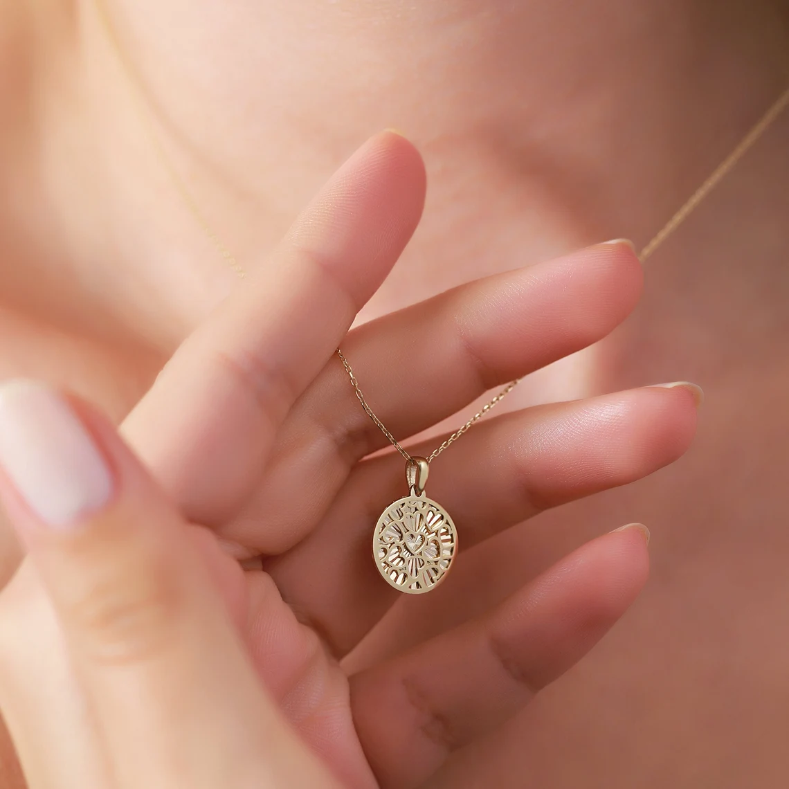 Meet our elegant 14K Round Clover Gold Necklace, a timeless piece that seamlessly combines elegance with a touch of serendipity. This elegant necklace, with its delicate round clover pendant made of genuine 14K gold, is the perfect accessory for those who value both style and quality.