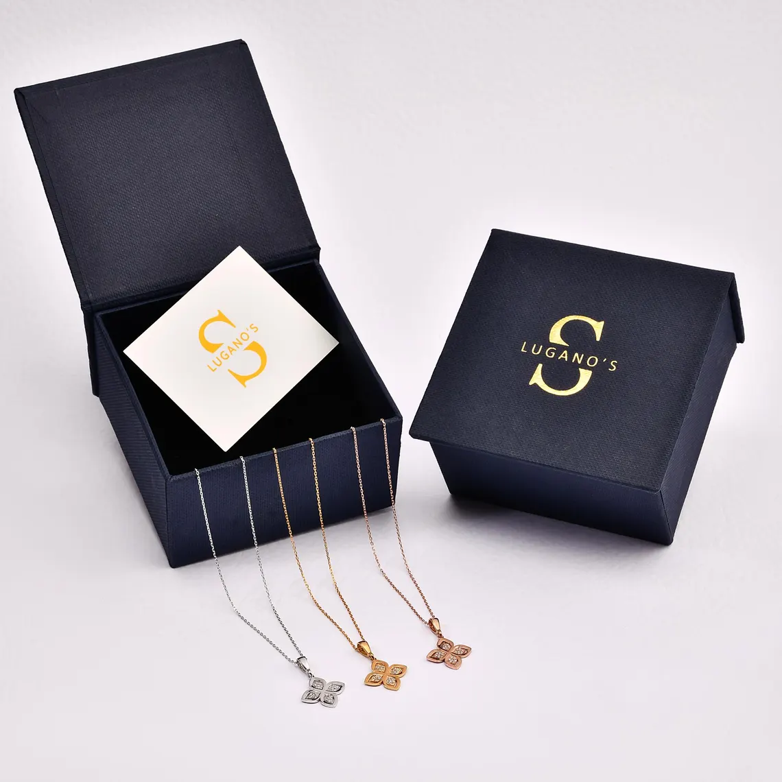 ✔️ Design: Four-petal flower with diamond detail