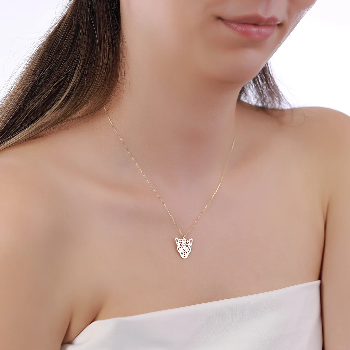 14K Gold Panther Necklace – Cutout Wildcat Pendant, Animal Jewelry