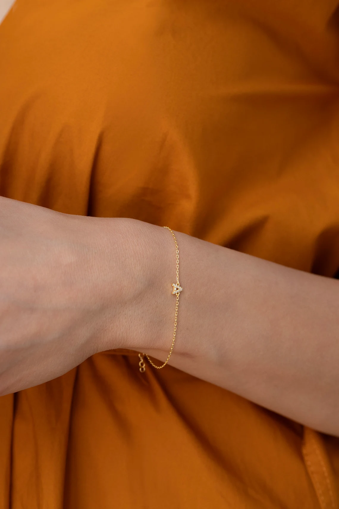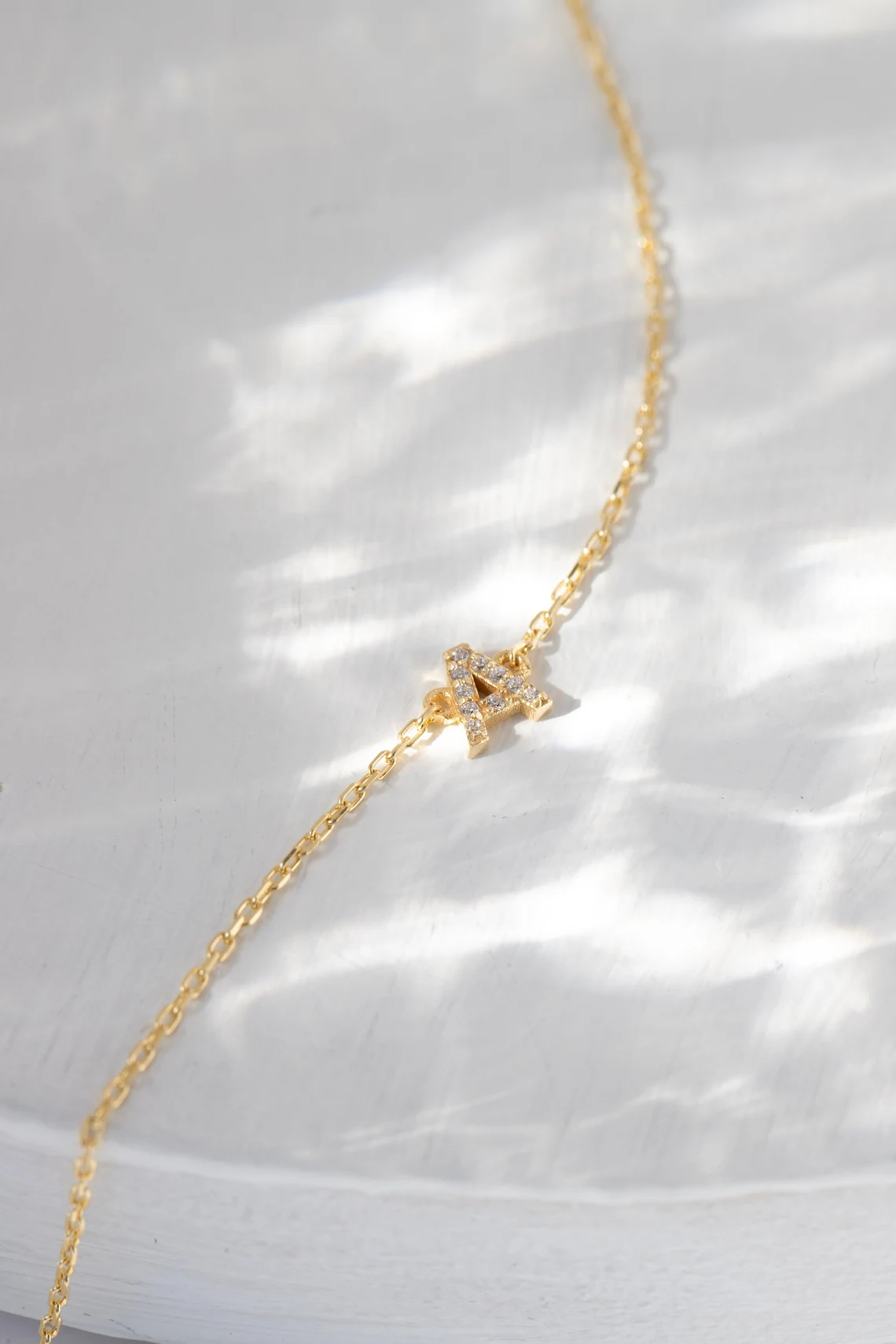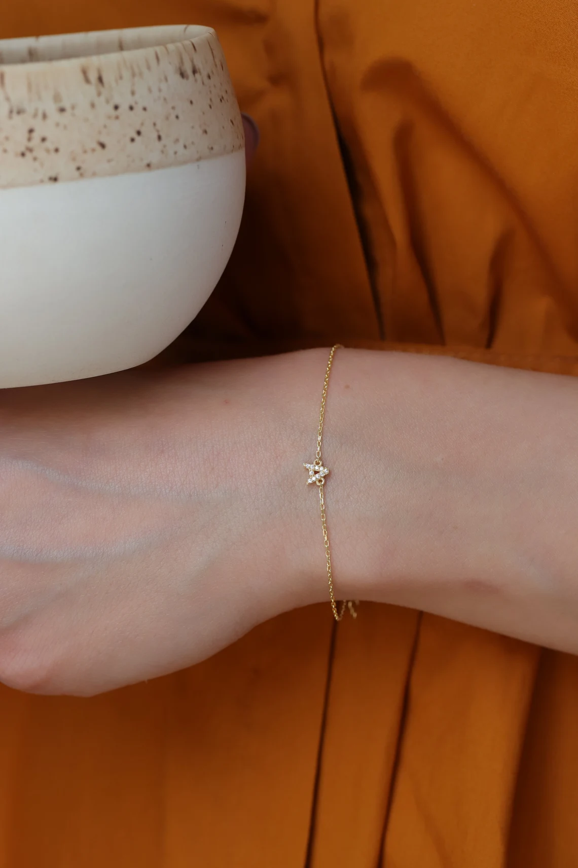 14k Gold Star of David Bracelet, Pavé Charm, Minimalist Judaica