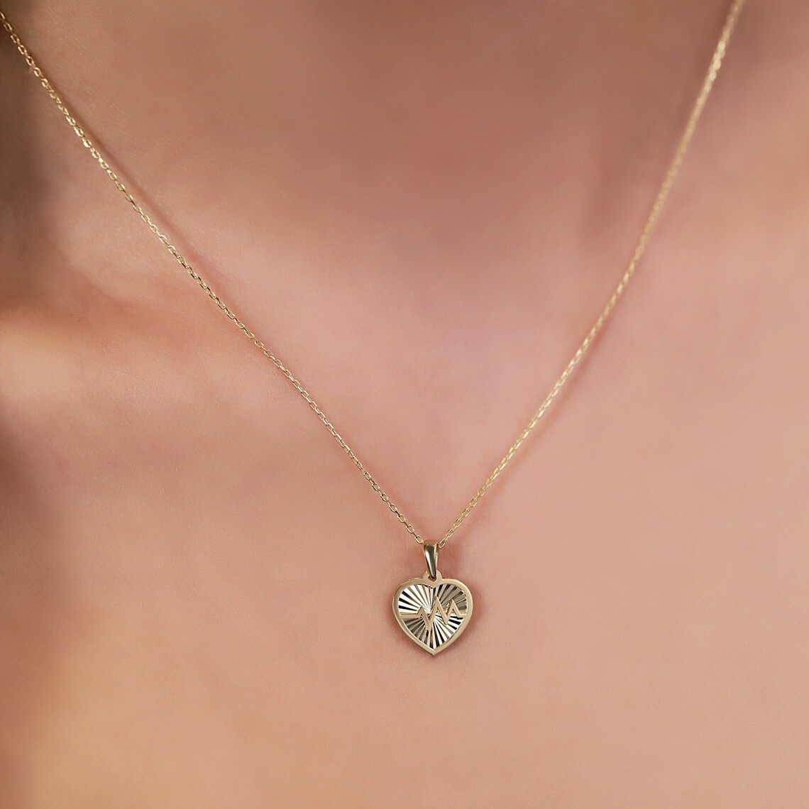 “14K Solid Gold Heartbeat Necklace | Rhythmic Love Pendant” için yorum yapan ilk kişi siz olun
