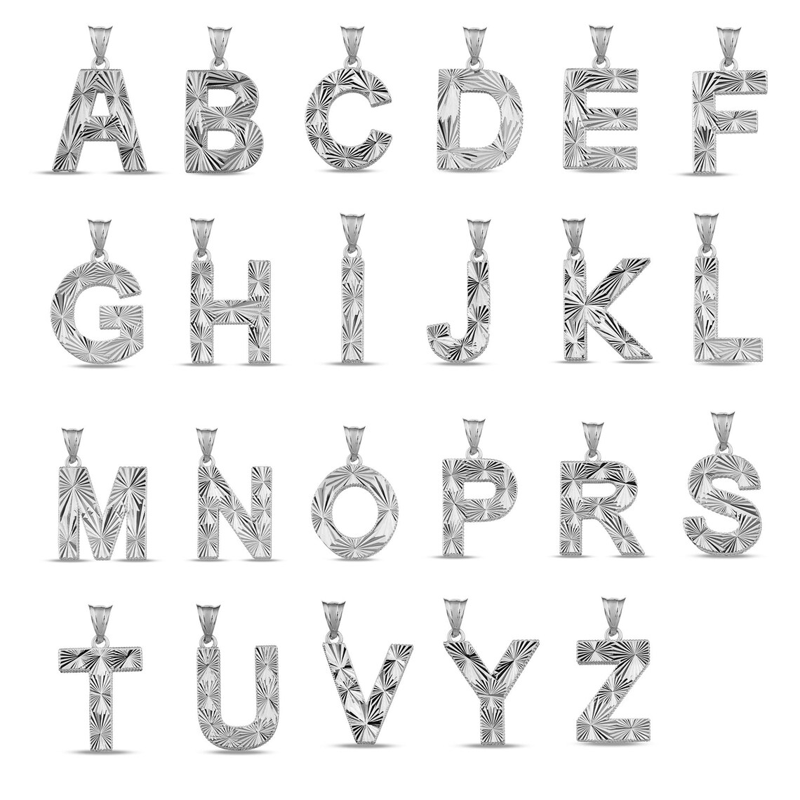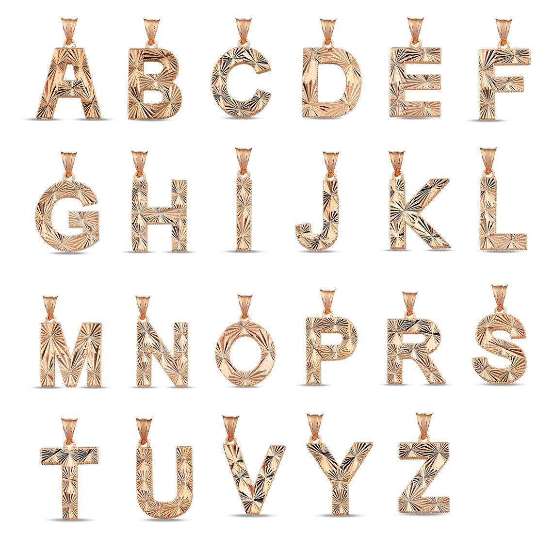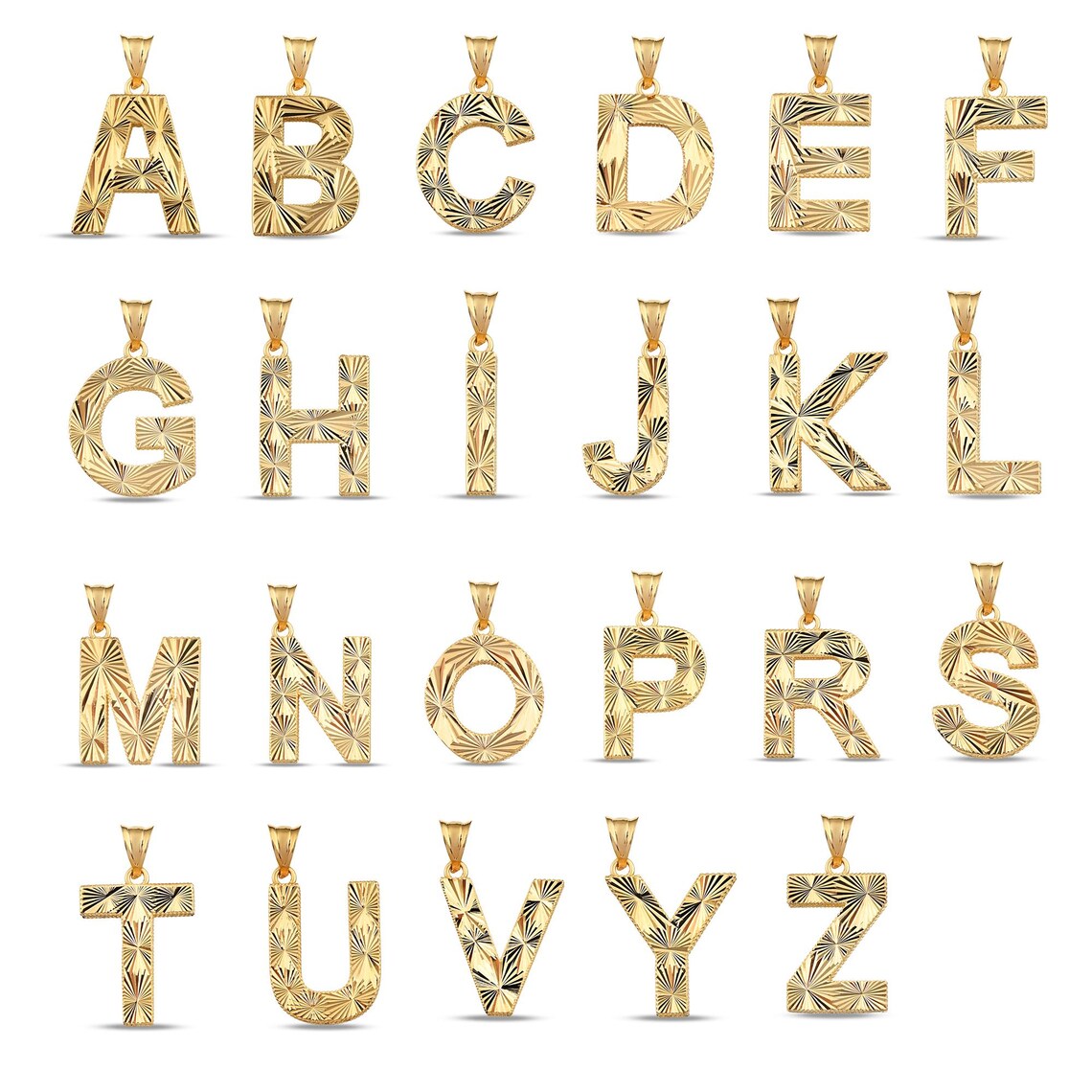 14k Solid Gold Initial Pendant, Sunburst Letter Charm