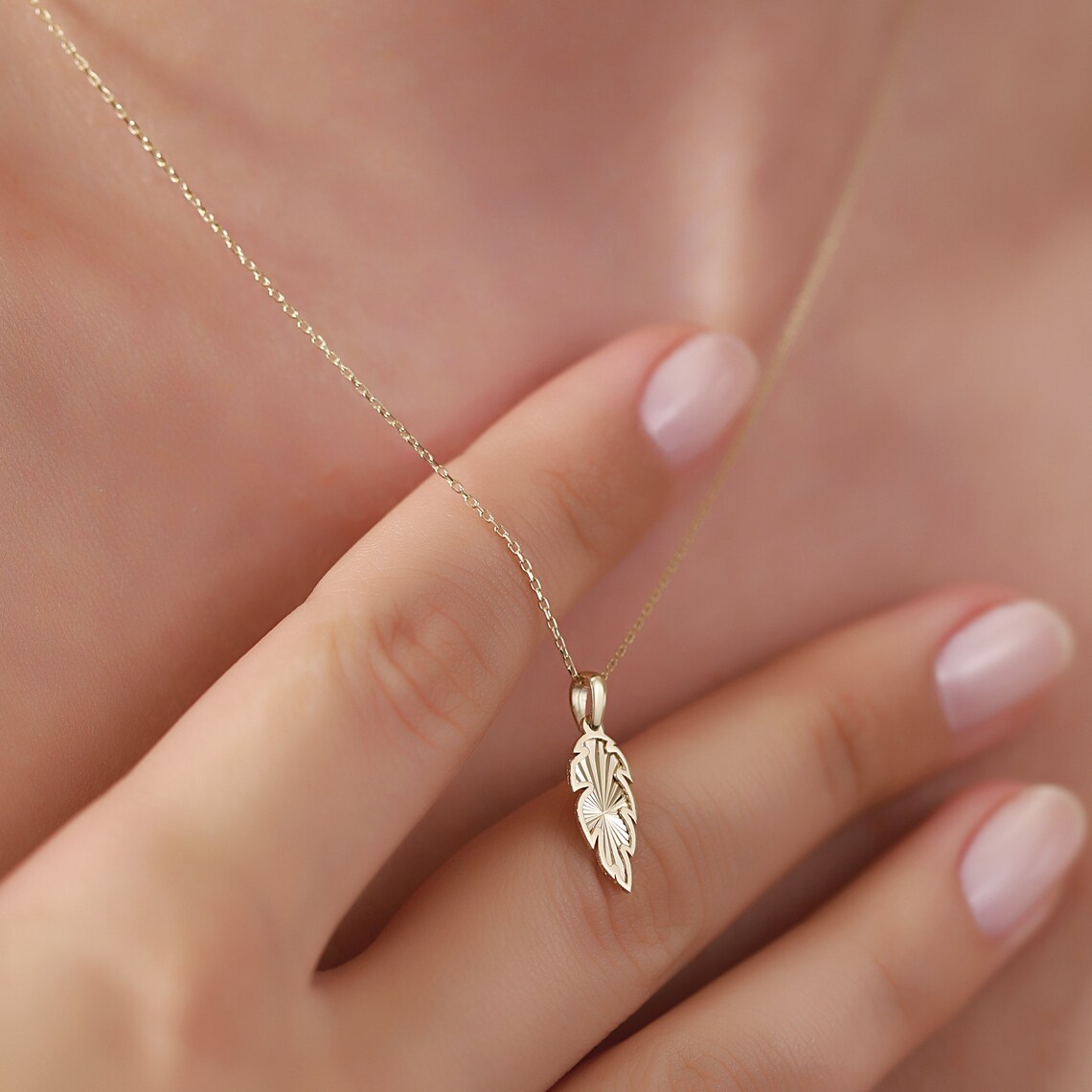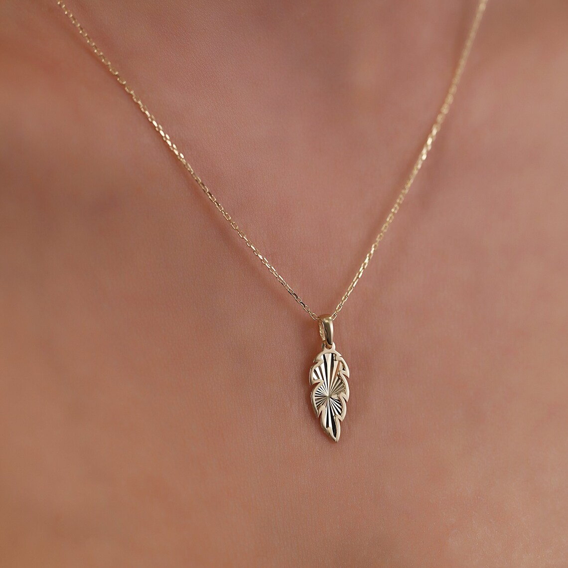 14K Solid Gold Leaf Pendant Necklace | Nature Jewelry