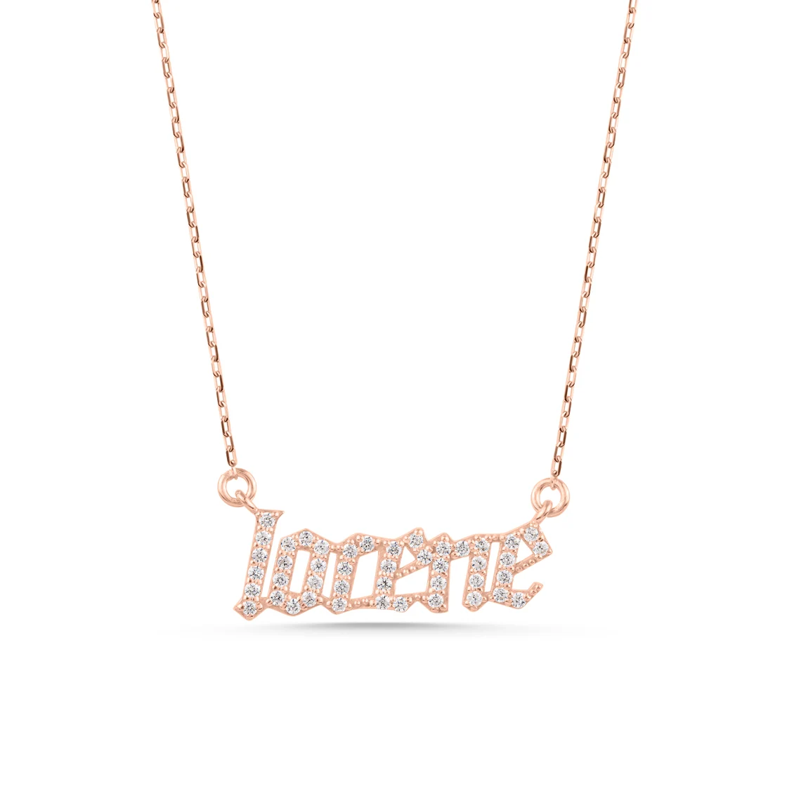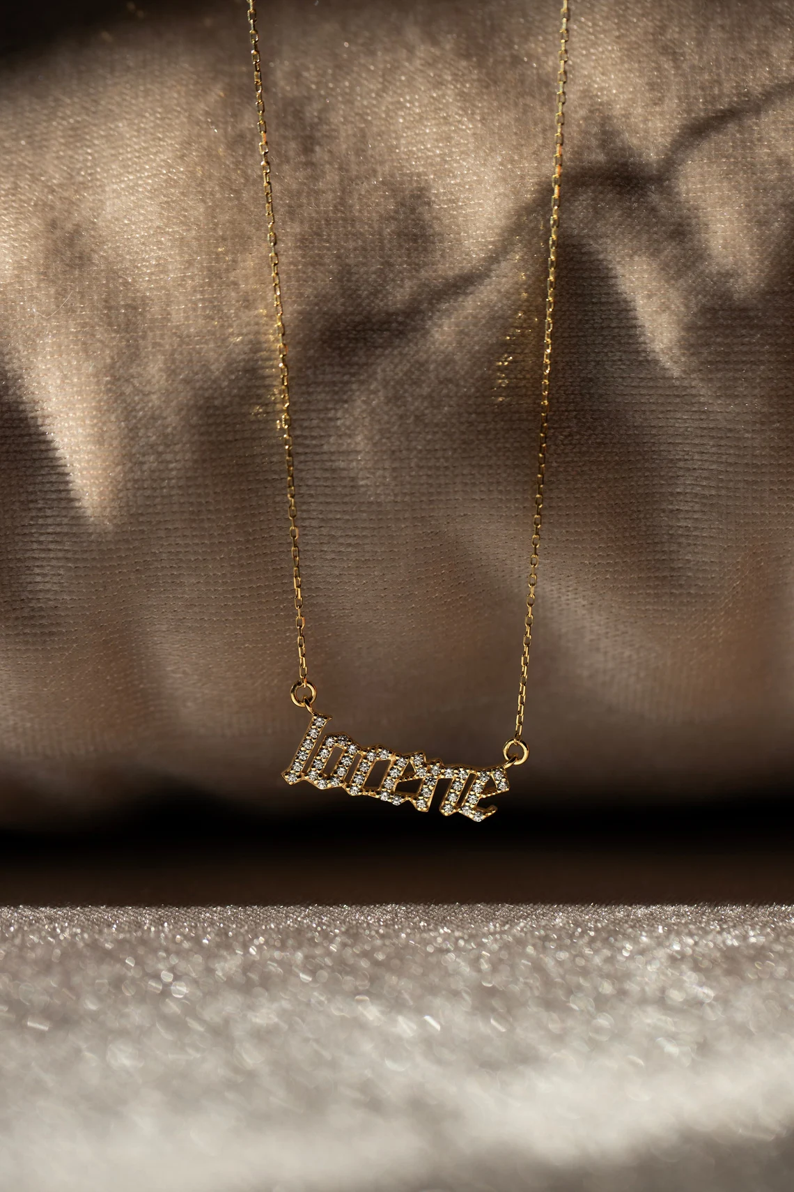 Custom Solid Gold Diamond Name Necklace – Gothic, Script Font