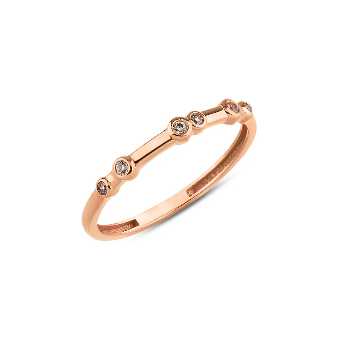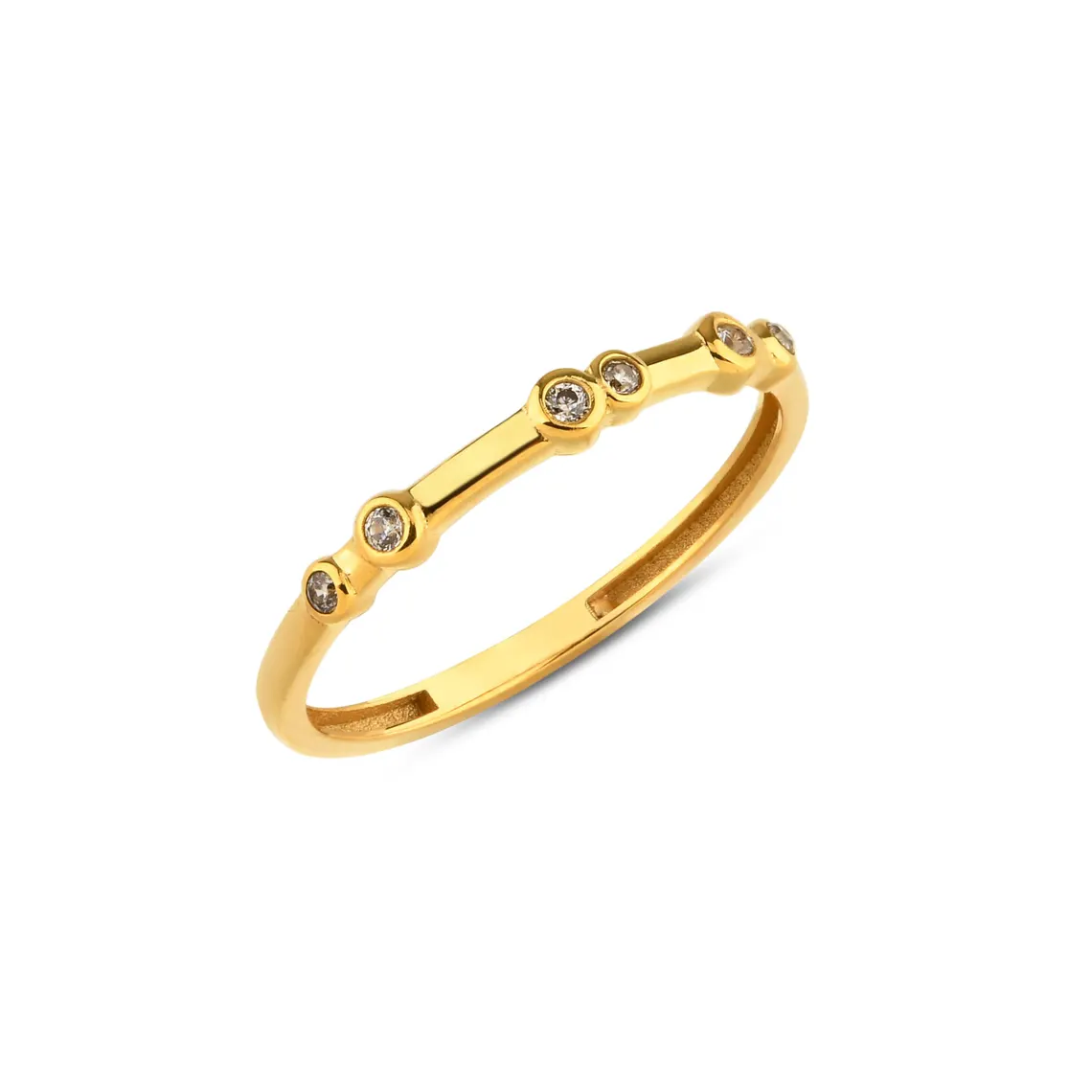 Shine with subtle elegance in this 10k or 14k solid gold bezel diamond ring. Featuring alternating bezel-set diamonds across a slim band, its constellation-inspired design evokes the magic of the night sky while staying minimalist and refined.