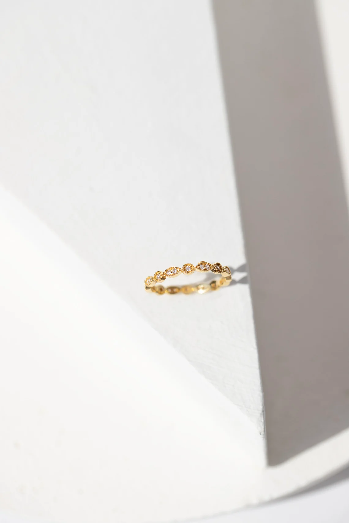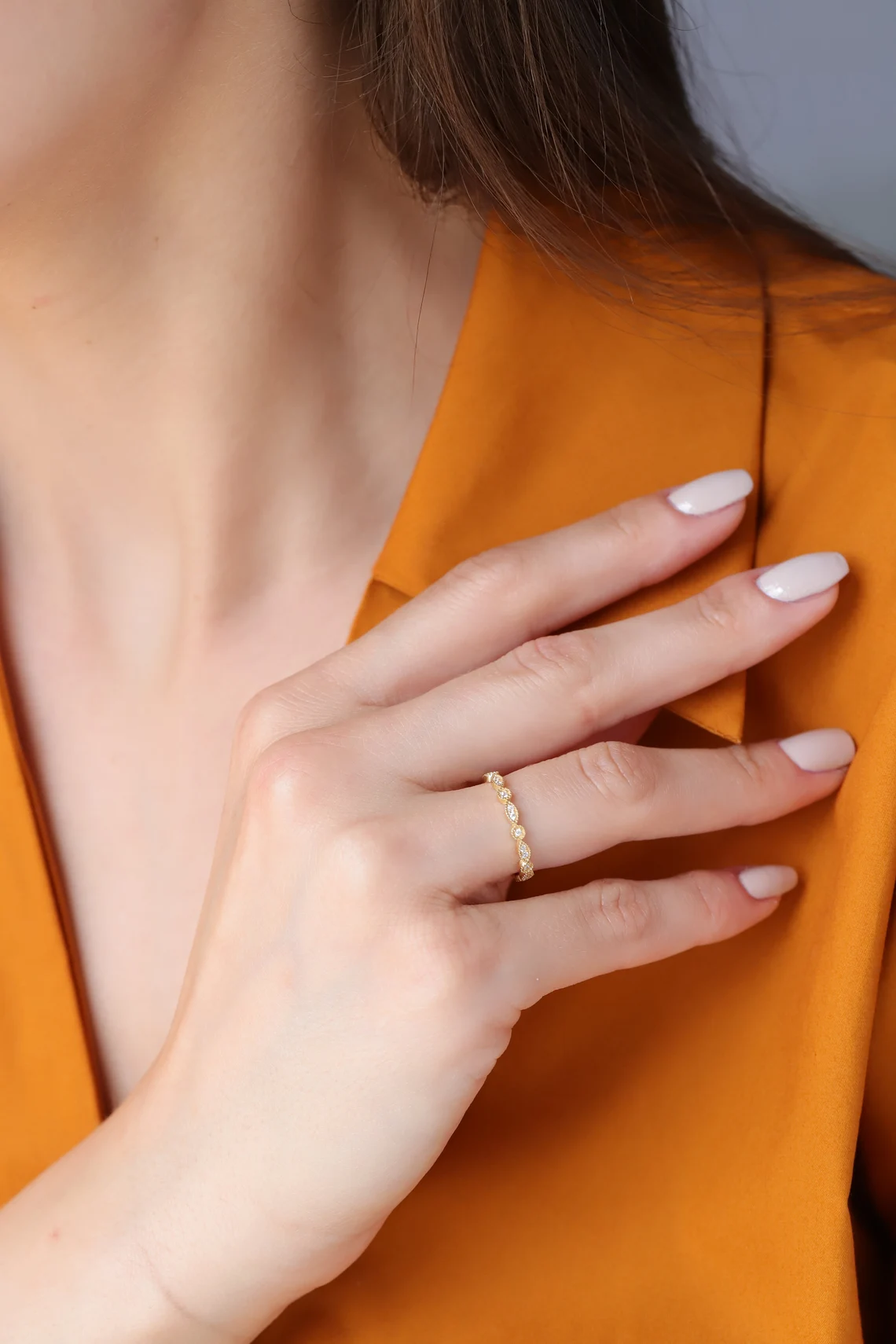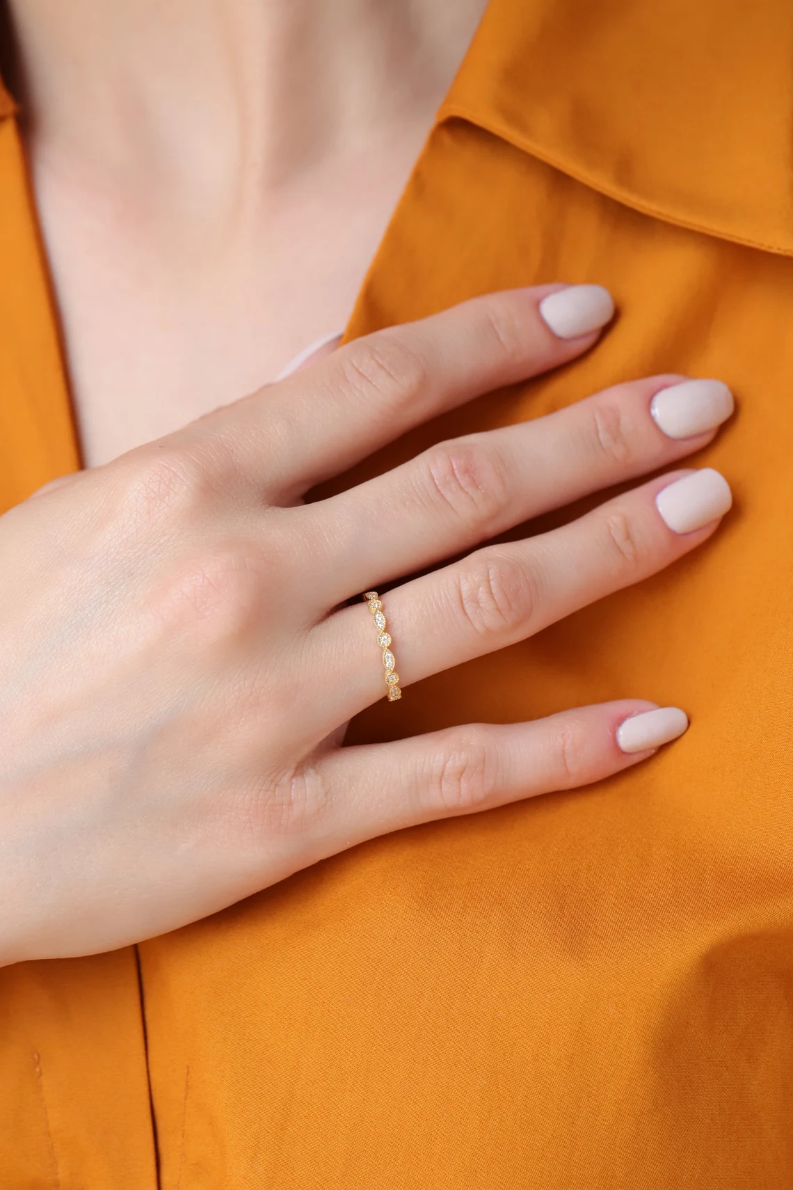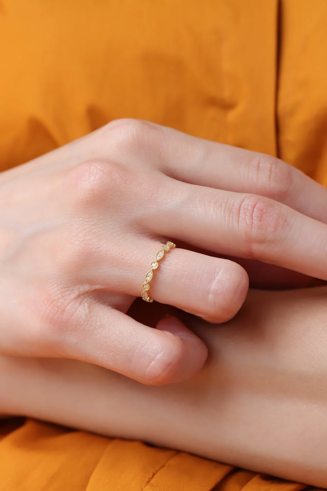 Gold Cubic Zircon Diamond Eternity Band Ring, Marquise & Round Milgrain Design