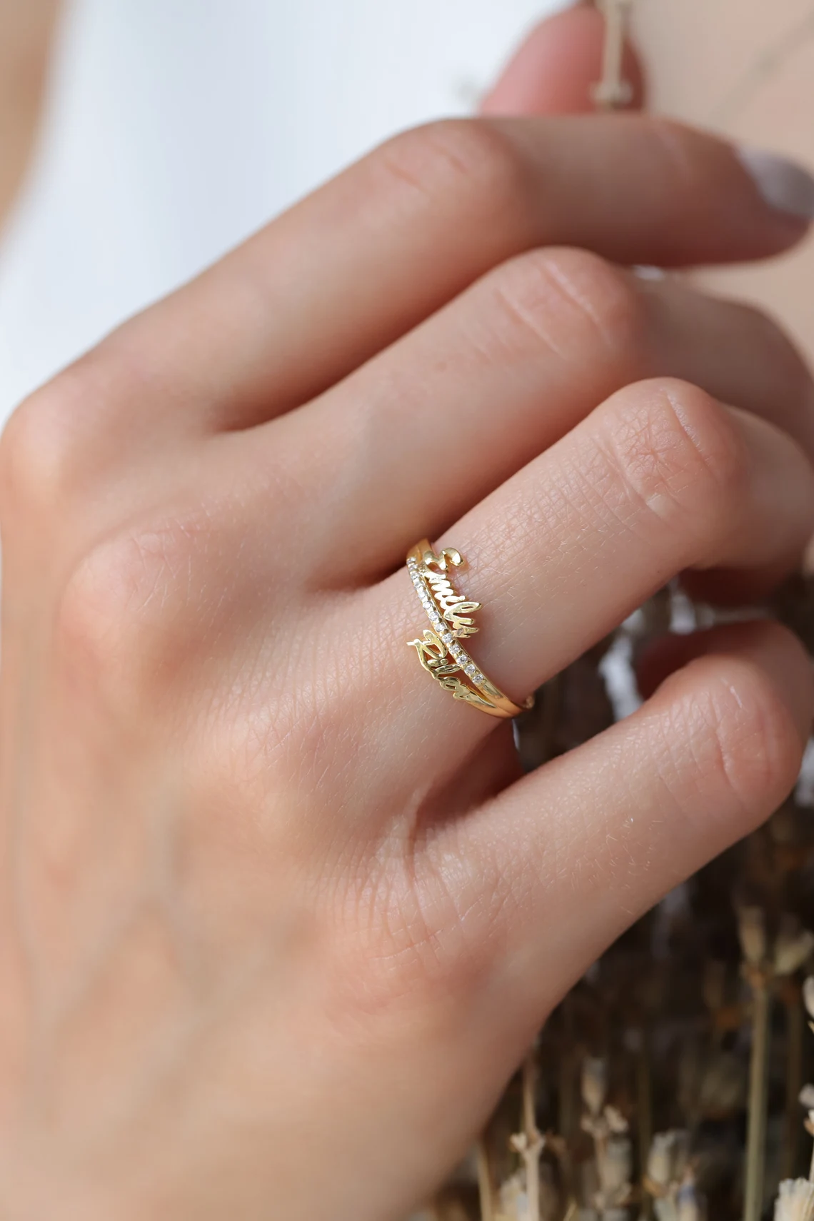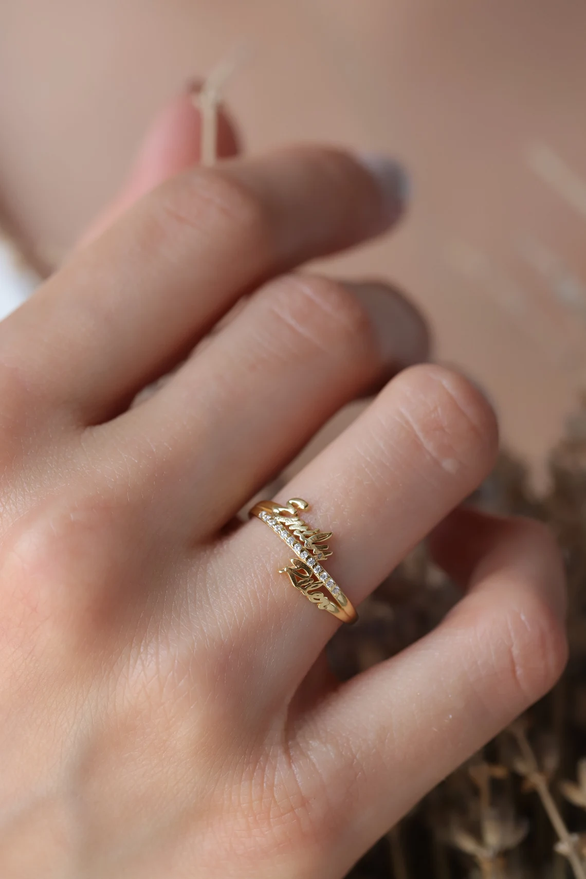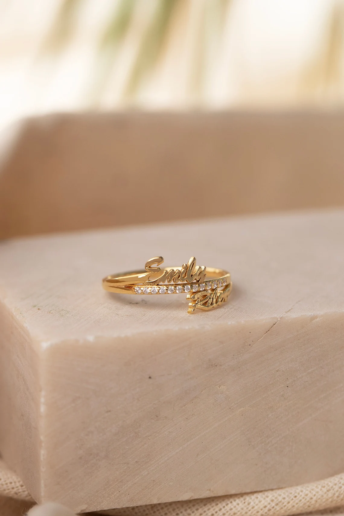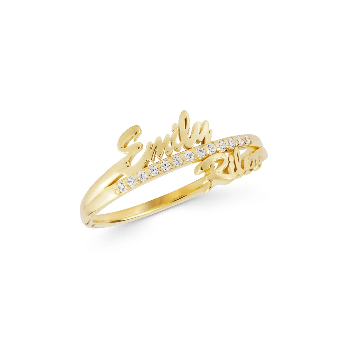 Gold Custom Double Name Ring with Pavé Diamonds