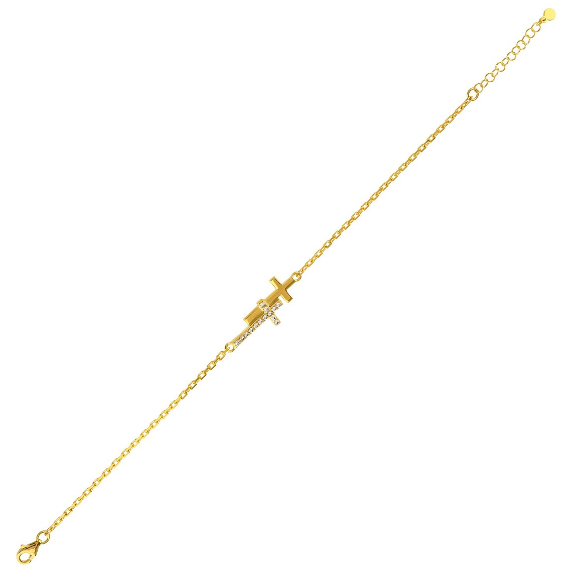 Gold Double Cross Bracelet, CZ Faith Jewelry