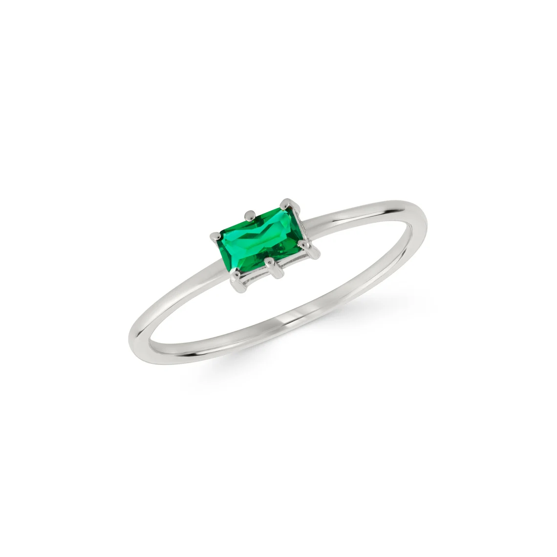 Emerald-cut green gemstone solitaire