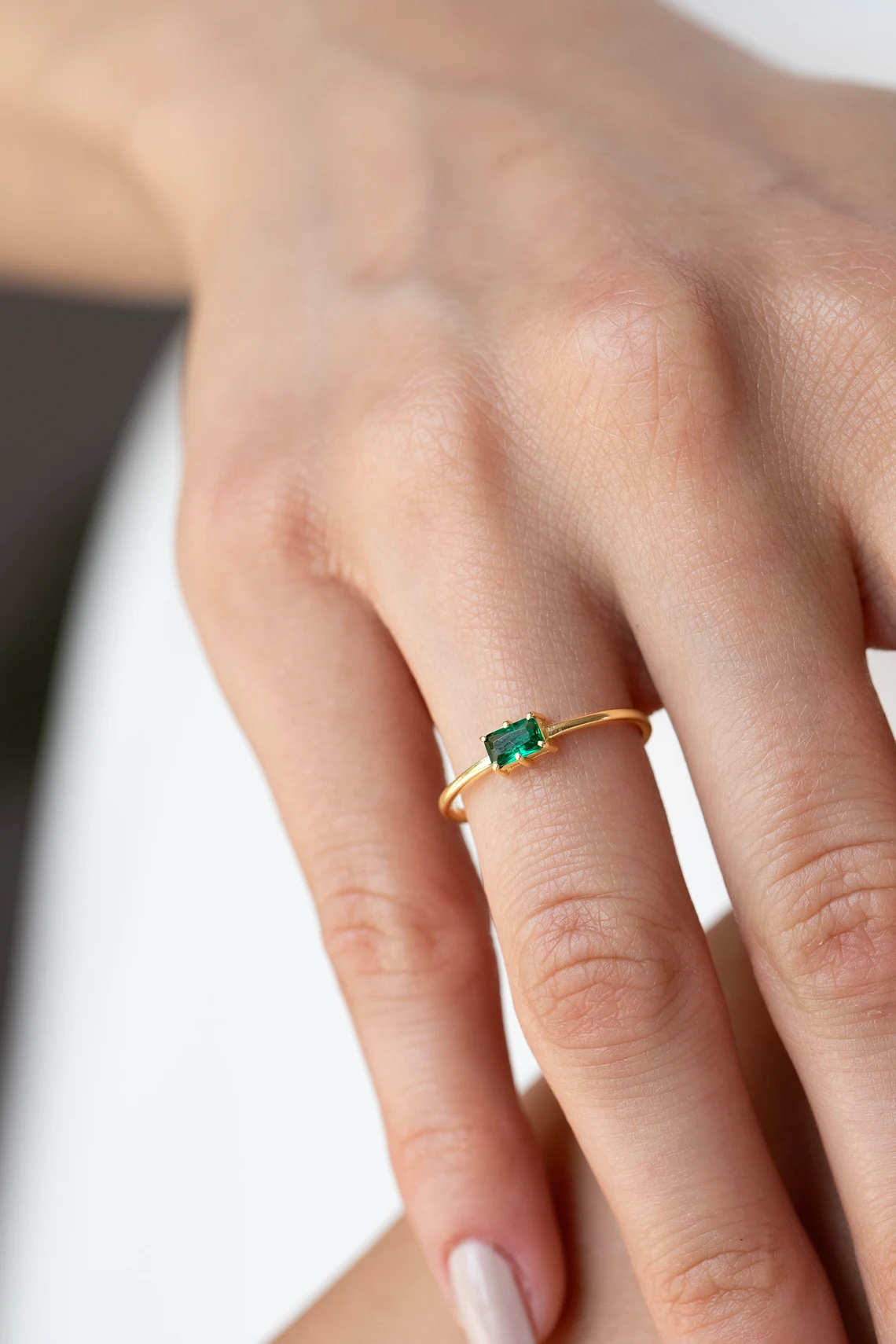 Gold Emerald Cut Ring, Minimalist Gemstone Solitaire Band