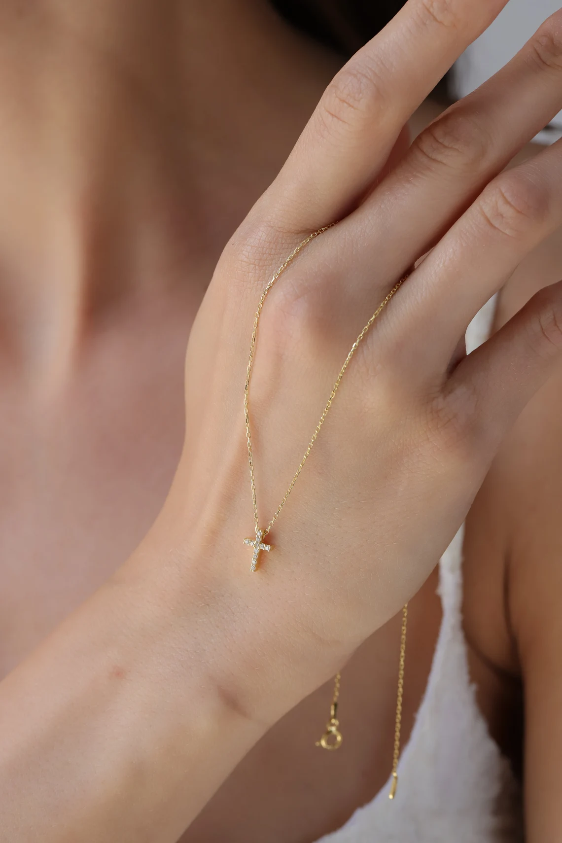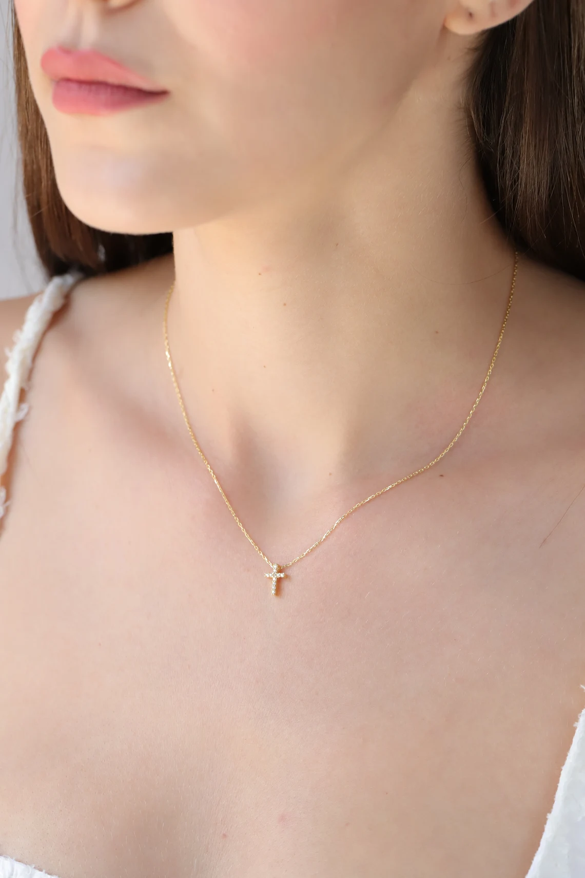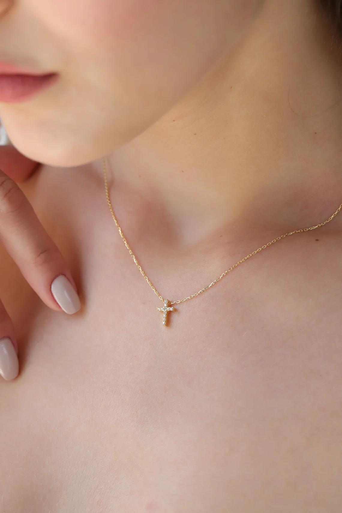 Solid Gold Diamond Cross Necklace – Pavé Faith Pendant