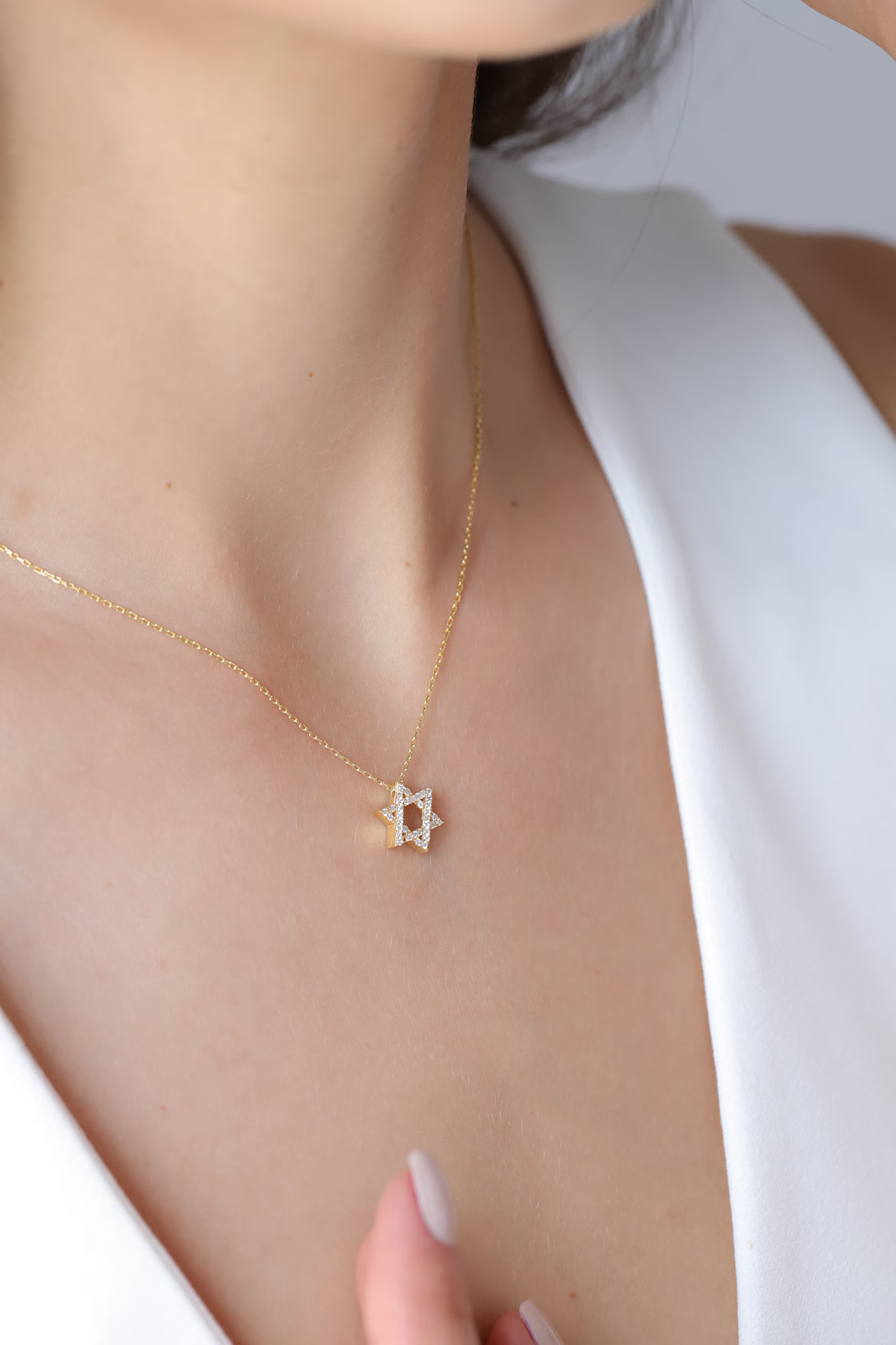 Solid Gold Diamond Star of David Pendant – Jewish Necklace