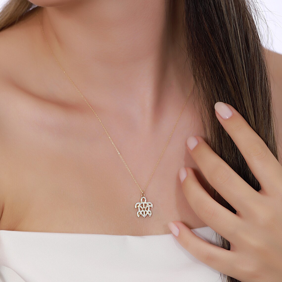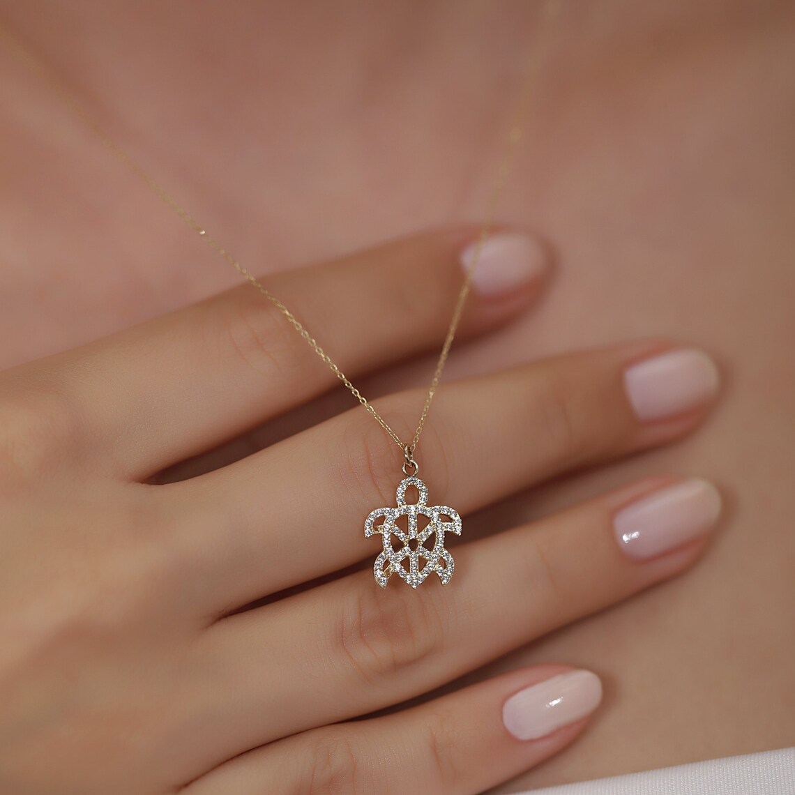 Solid Gold Diamond Turtle Necklace – 10K/14K Fine Jewelry