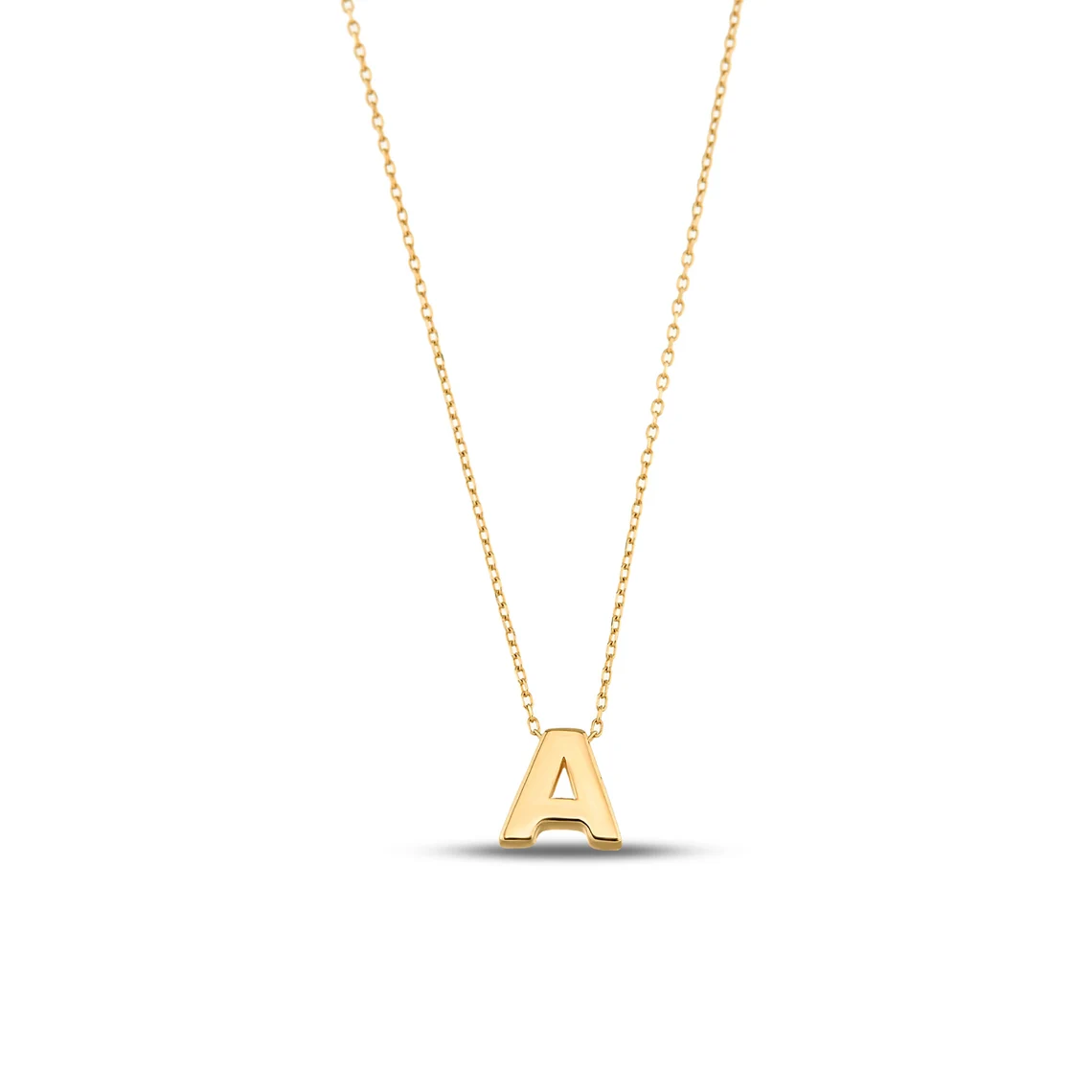 Solid Gold Initial Necklace – 10K/14K Letter A Pendant
