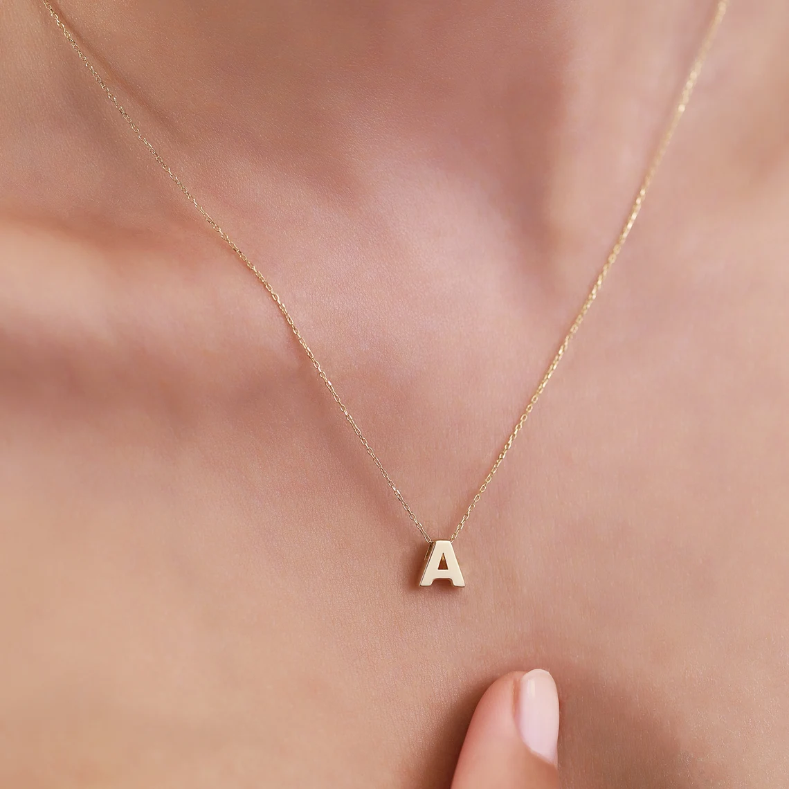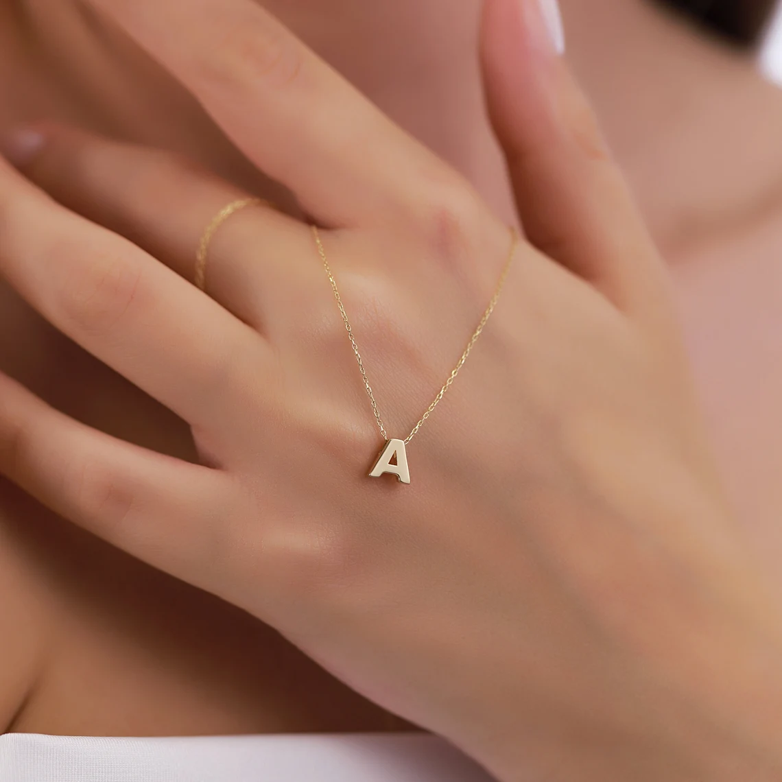Make it personal with this solid gold initial necklace, featuring the letter A, available in 10K or 14K real gold. Simple yet elegant, this pendant is perfect for daily wear or as a thoughtful gift that carries personal meaning.